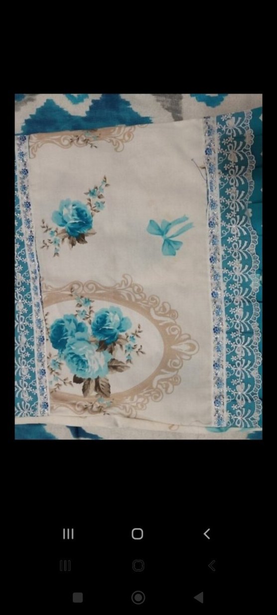 Mavi çiçek desenli, dantel detaylı hafif renkli