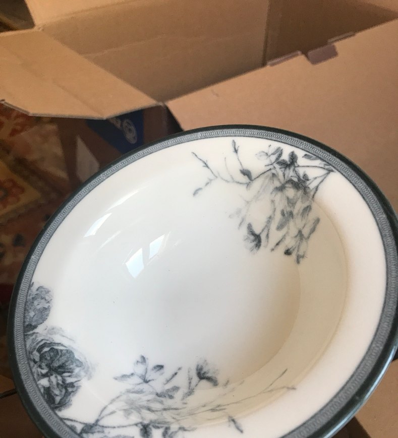 Mavi çiçek desenleriyle süslenmiş beyaz yemek takımı. BONE(kemik) ürünü olduğu için satıyorum. Hiç kullanılmadı.