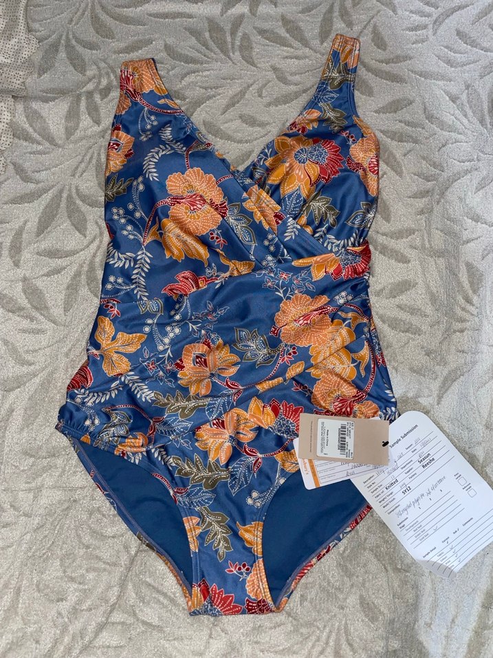 Mavi Çiçek Desenli Bohem Kadın Mayo