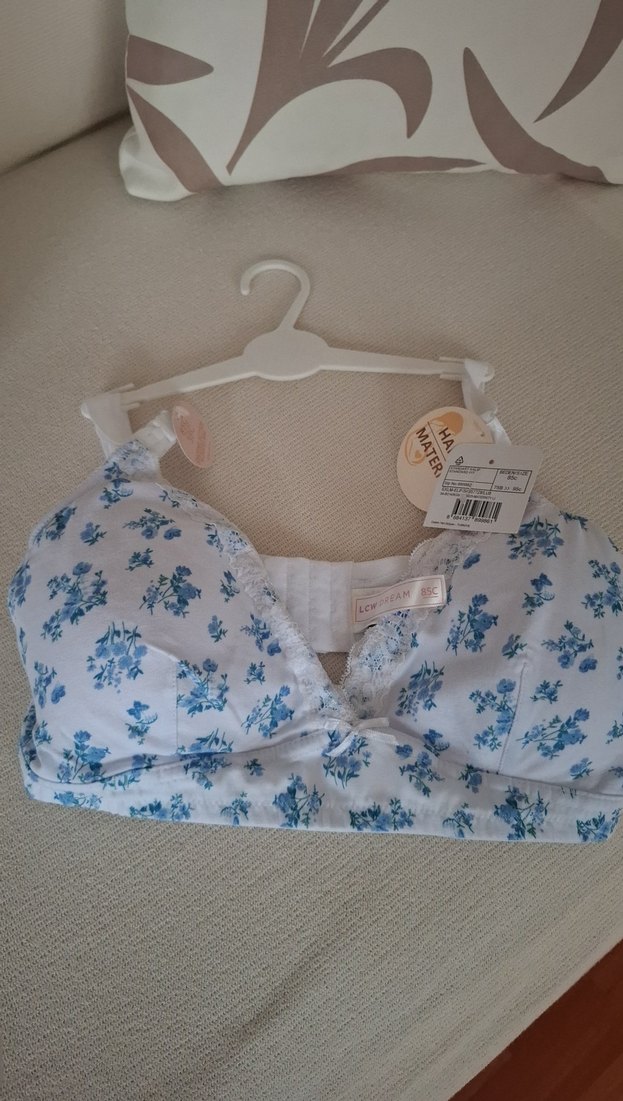 Mavi renkte kısa, mini boyda, pastel çiçek desenli vintage bohem tarzda yumuşak ve rahat sütyen. Hamile maternıty.85 C