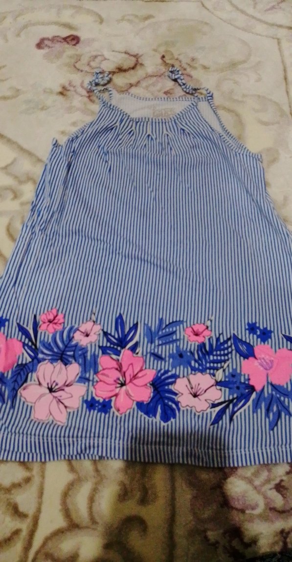 Mavi Çiçek Desenli Kız Elbisesi