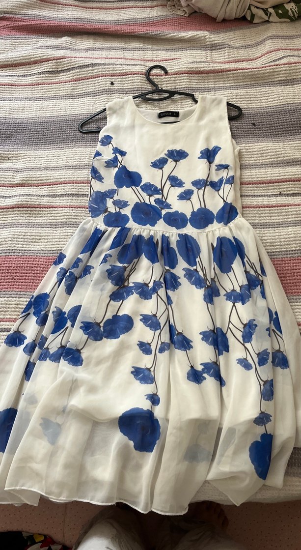 Mavi çiçek desenli, kolsuz midi hamile elbisesi. Pilili etek ve rahat oturan kesim ile günlük kullanıma uygun.