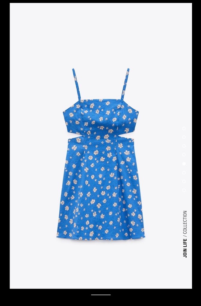 Mavi çiçek desenli, ince askılı ve straplez yakalı midi elbise, Bohem tarz için uygun, sade ve rahat bir modeldir.