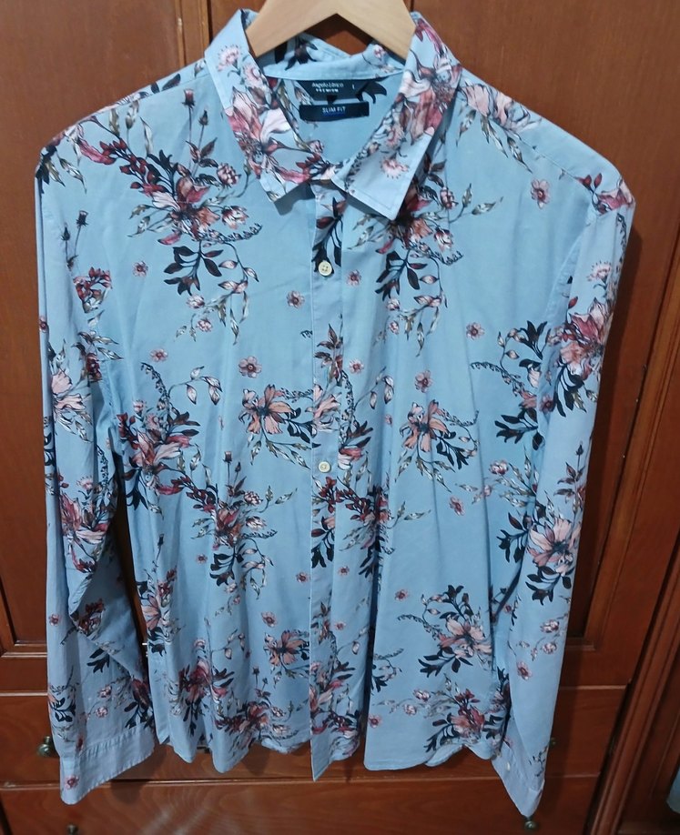 Mavi renkte, yakalı ve düğmeli uzun kollu gömlek. Pastel çiçek desenli, bol kesim ve yumuşak sentetik kumaştan yapılmıştır. Günlük kullanıma uygundur. iki kol arası 62 cm,omuzdan boyu 72 cm ve kol 82 cm dir.kolay ütülenen tiril tiril kumaşdır.