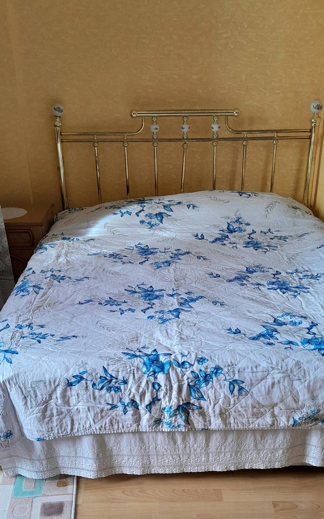 Mavi Çiçek Desenli Yatak Örtüsü