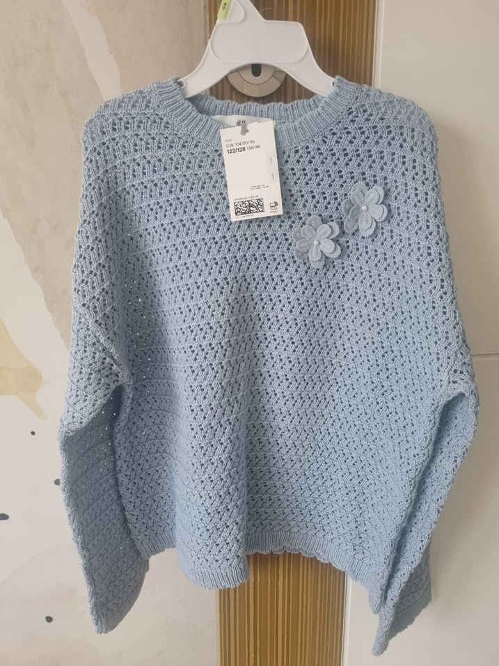 mavi çicek detay triko kazak
