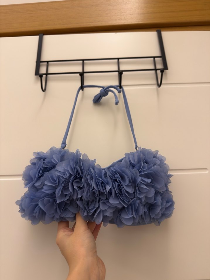 Mavi renkte, yumuşak çiçek detaylı kumaştan yapılmış bohem tarzda bir büstiyerdir. Midi uzunluğunda ve batik desenlidir.