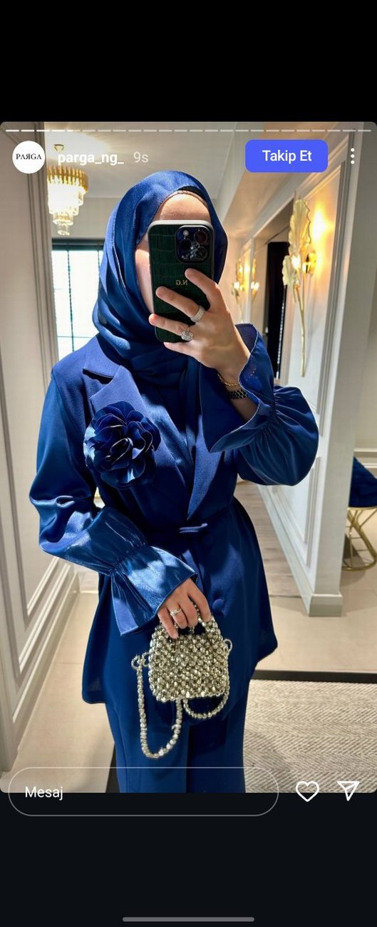 Mavi Çiçek Detaylı Uzun Kadın Takım
