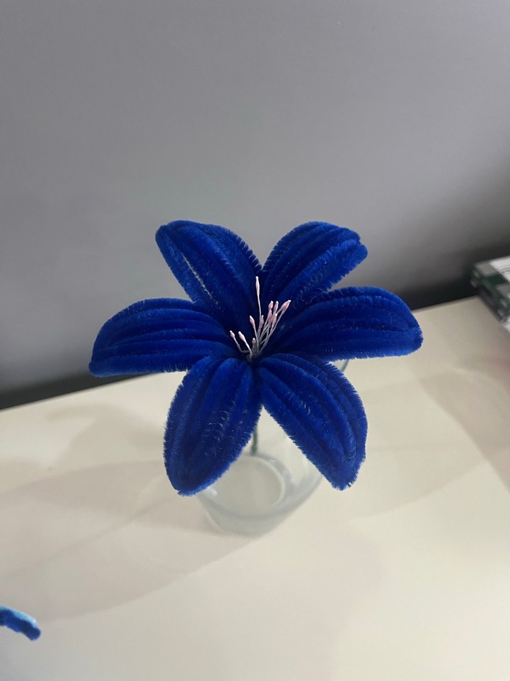 Mavi el yapımı şönilden çiçek. Şönilden çiçekler. Renklerini seçebilirsiniz.Vazo ile gönderilmemektedir. İsteyene fiyat farkıyla buket yapılır.