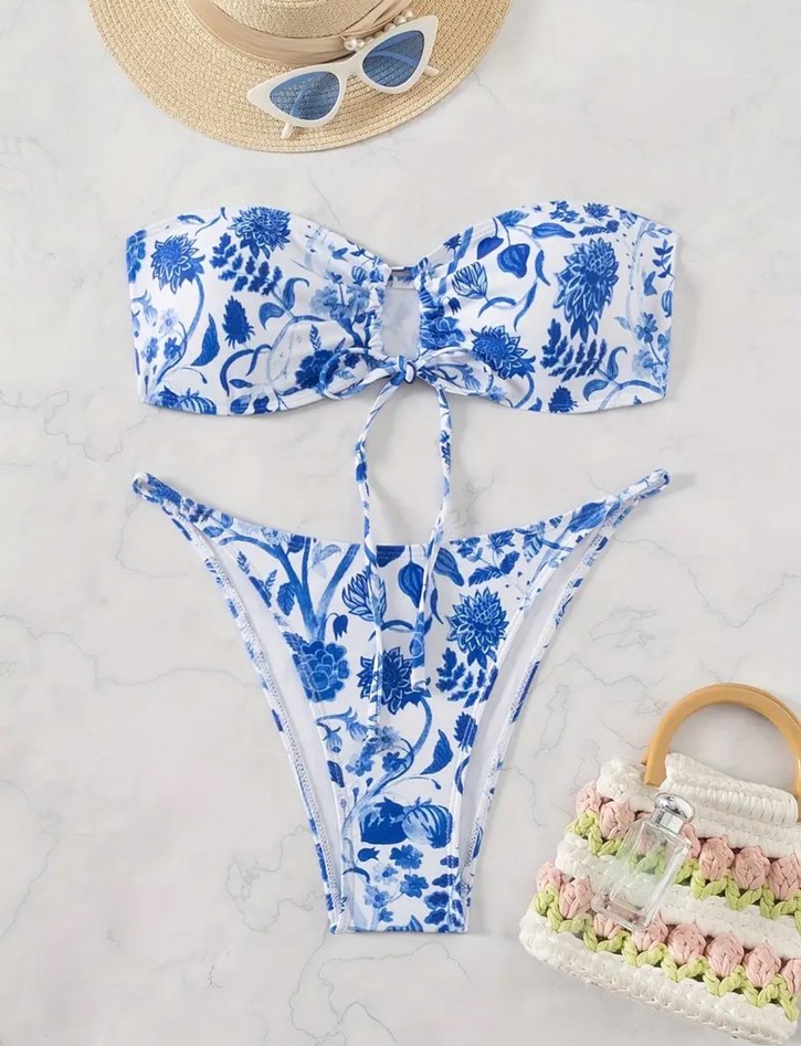 Mavi Çiçekli Bohem Bikini Takımı