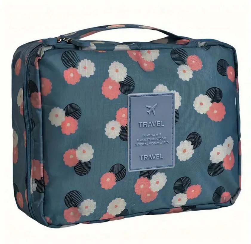 Mavi Çiçekli Bohem Kadın Makyaj Çantası Seyahat