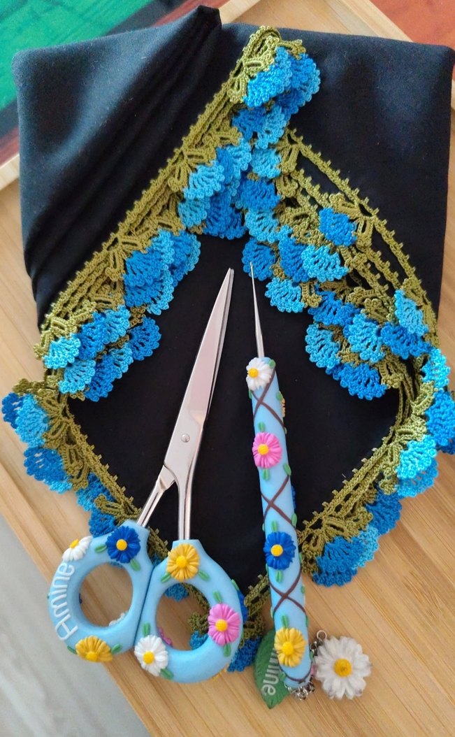 Mavi Çiçekli Bohem Nakışlı Oya