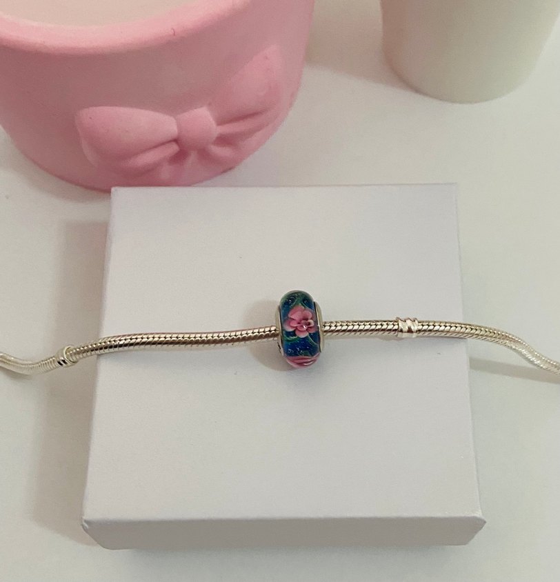 Mavi Çiçekli Boncuk Charm