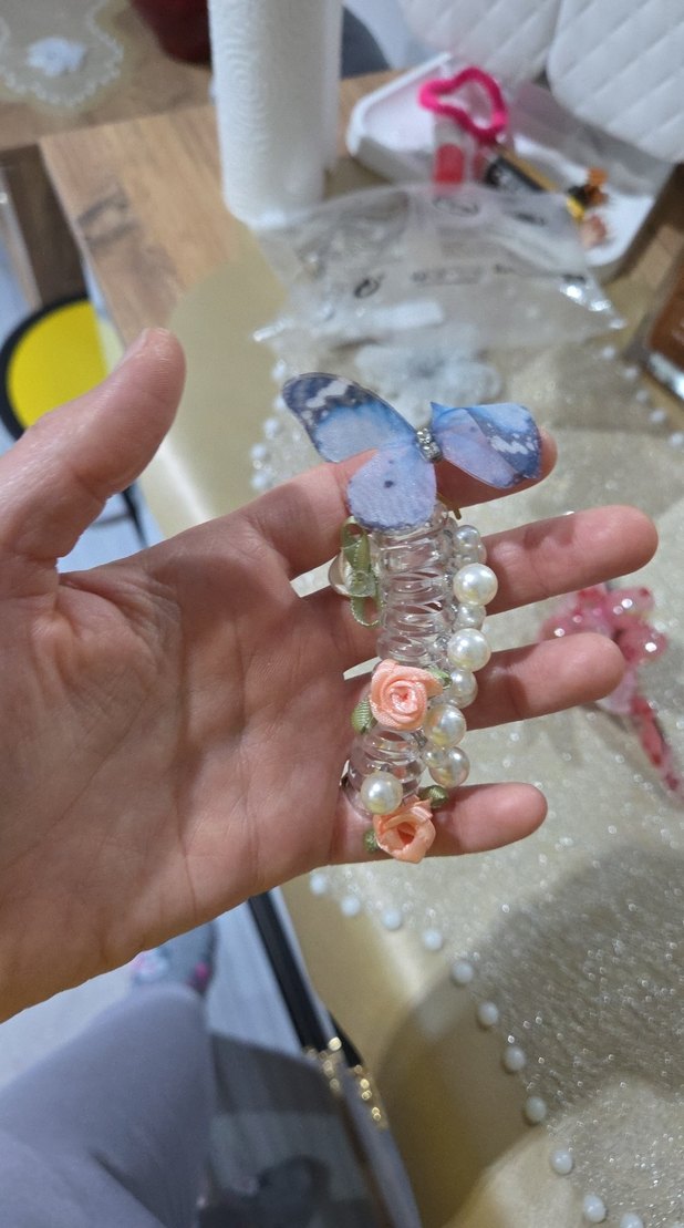 Mavi Çiçekli Boncuklu Kadın saç toplama tokası