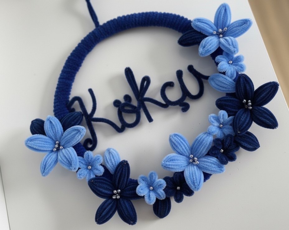 Mavi Çiçekli El Yapımı Kapı Süsü