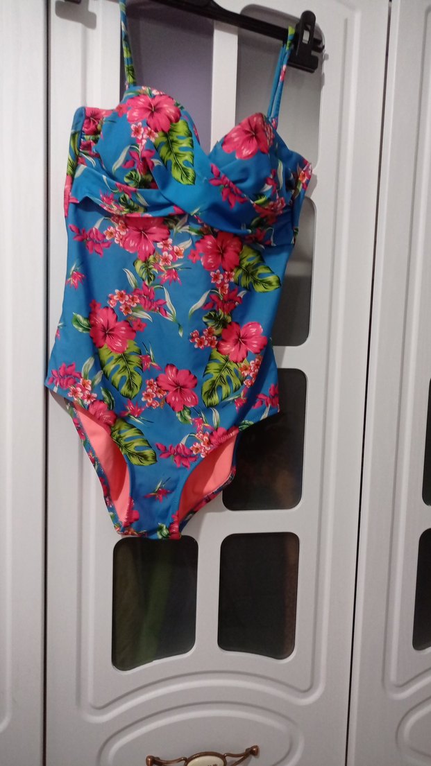 Mavi Çiçekli Fırfırlı Kadın Mayo