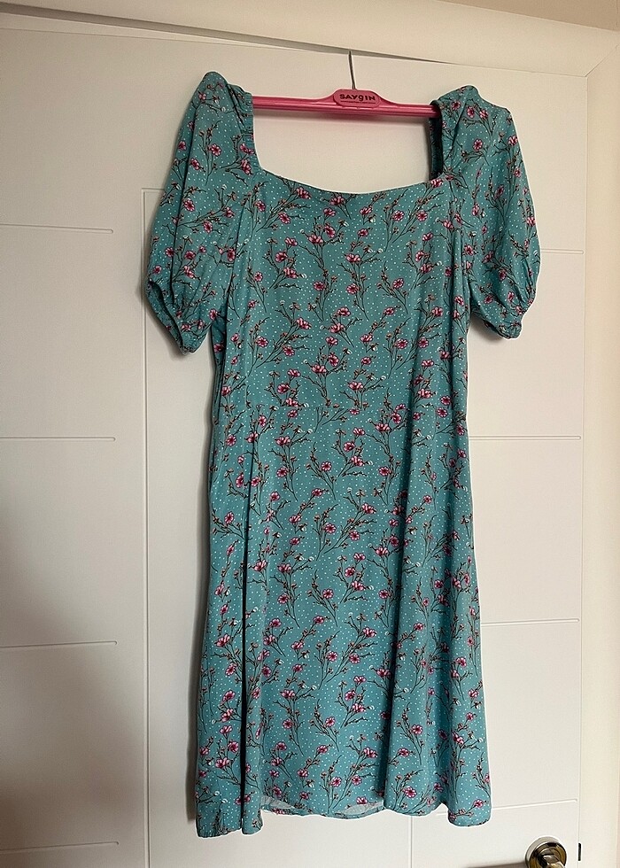 Mavi Çiçekli Kare Yaka Elbise