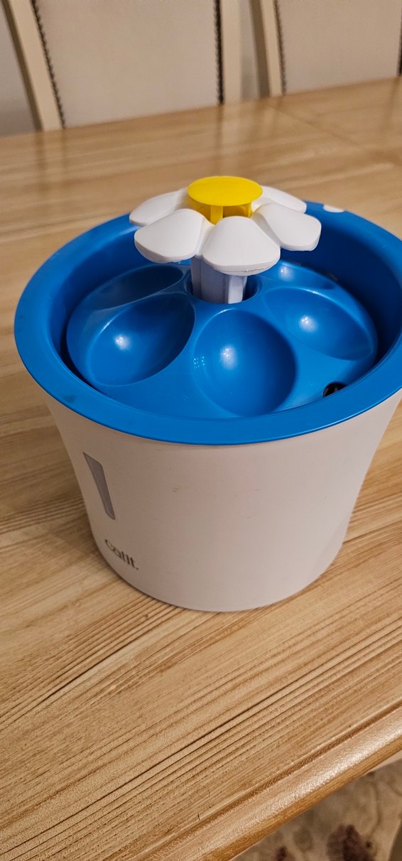Mavi renkte çiçek şeklinde üstü olan, suyun akışını sağlayan interaktif su oyuncağıdır.