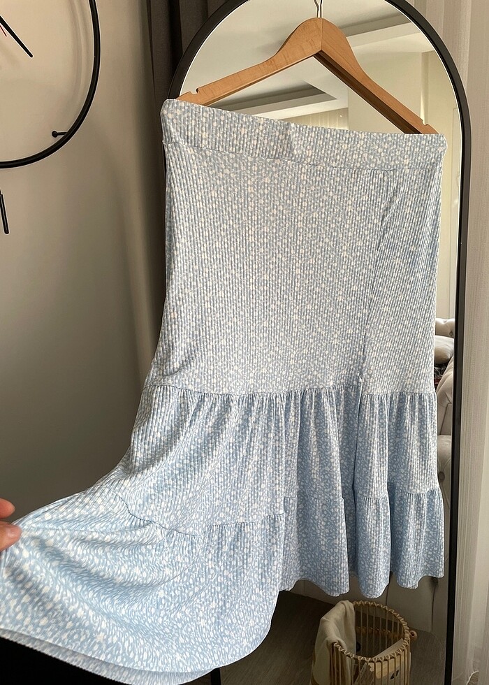 Mavi çiçekli yırtmaçlı etek