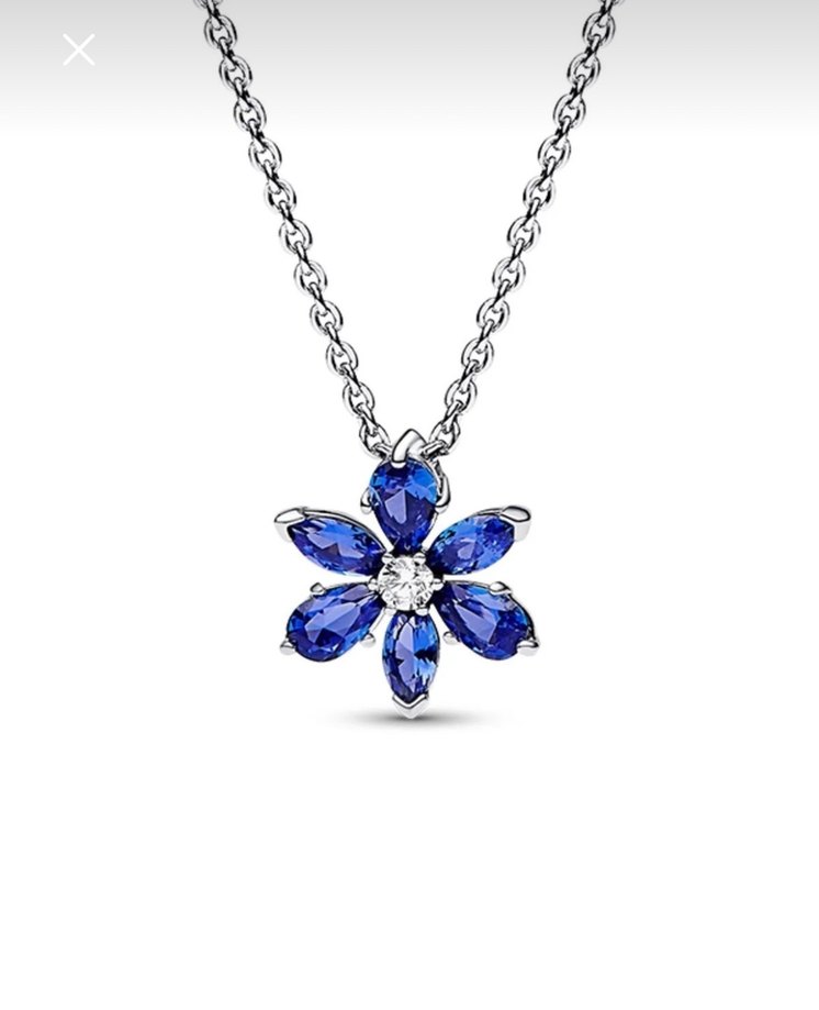 Mavi Çiçekli Zincir Kolye Orjinal pandora kolye 925 gümüş