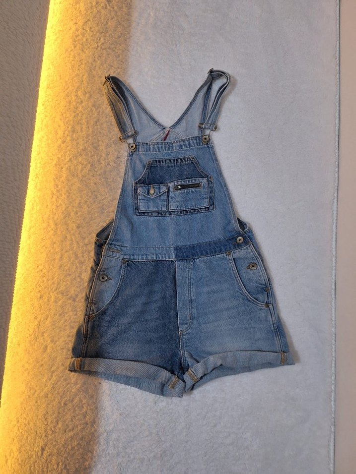 Mavi denim, çift tokalı askılı, cep detaylı, salaş kesim kadın şort salopet. Rahat ve günlük kullanıma uygun bir tasarım. 13)15yas 36 beden uyumlu