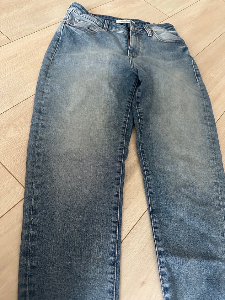 Mavi cındy mom jeans 20 cm bel boyu 93 cm uzunluk bel 38 cm 41 e kadar çıkıyor çok esnemiyor ürün yeni gibi.