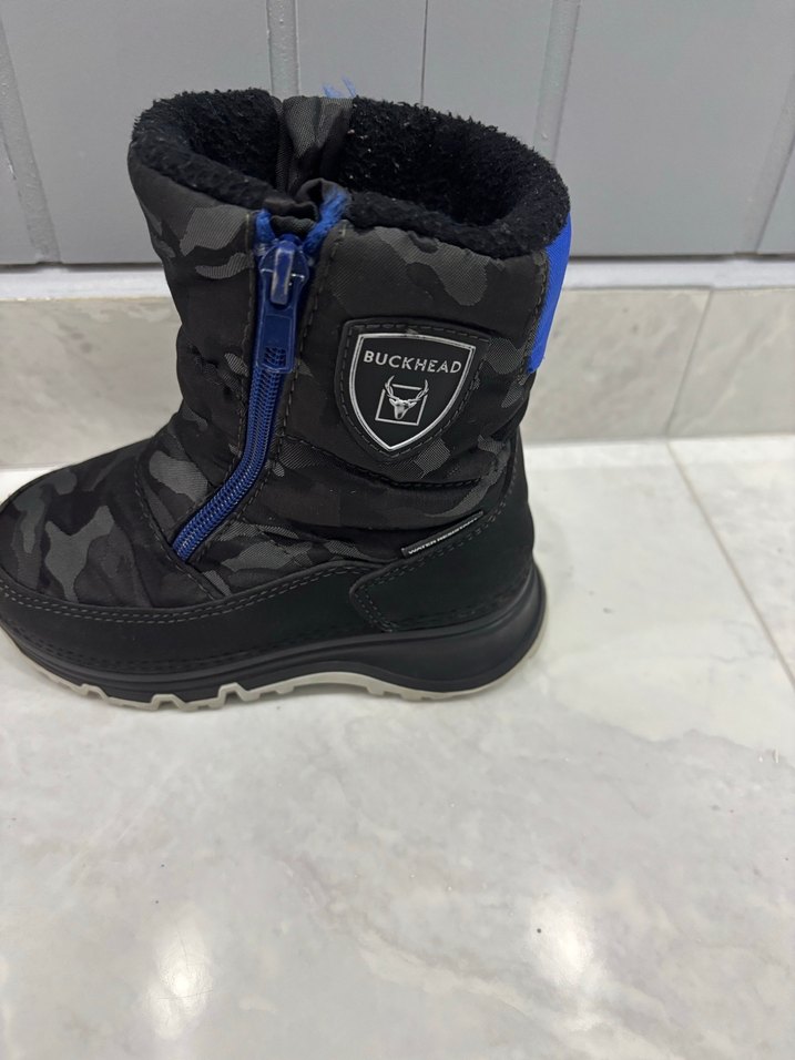 Koyu mavi ve siyah renklerde, fermuarlı erkek çocuk botu. Dayanıklı su geçirmez malzemeden kışın günlük kullanım için sıcacık tutan bot