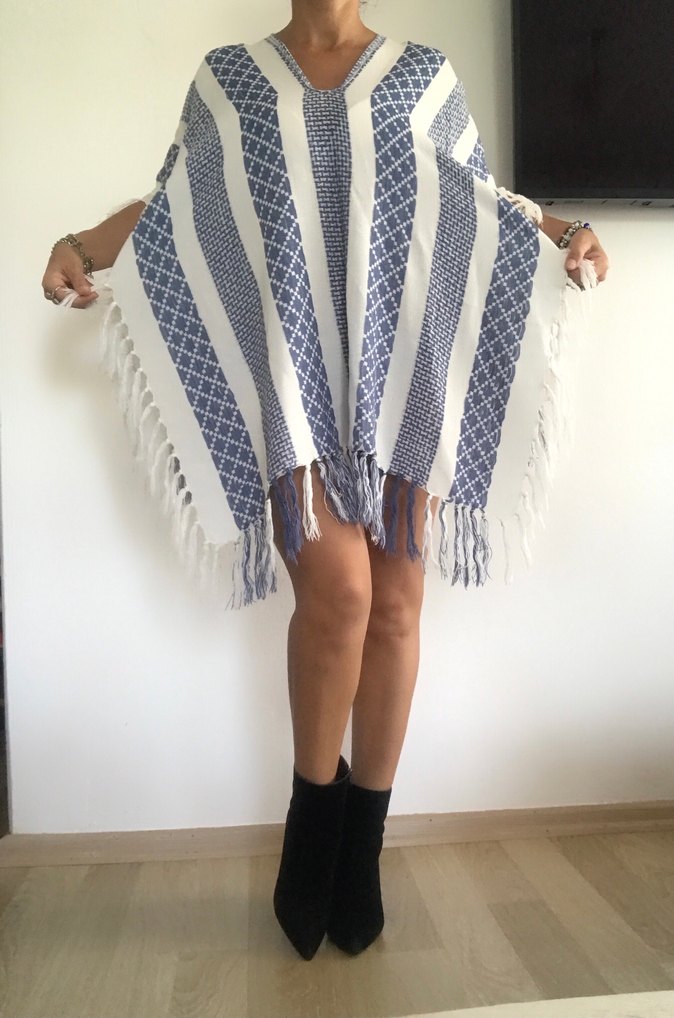 Mavi Çizgili Bohem Kadın Plaj Giyim