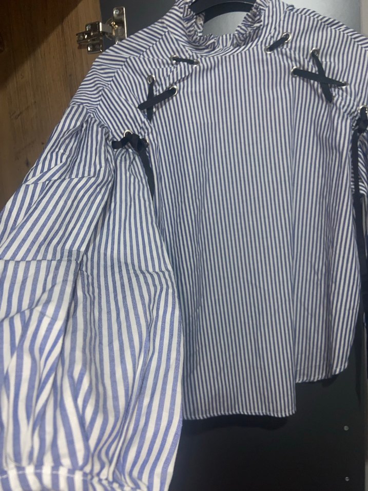 Mavi Çizgili Düğmeli Kadın gömlek sıfır