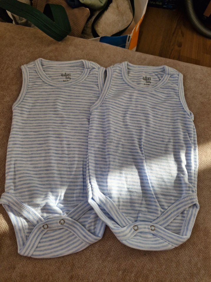 Mavi Çizgili Erkek Bebek Askılı Body