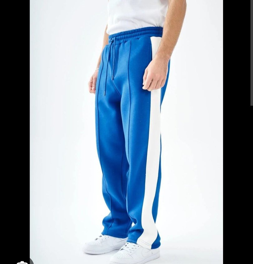 Mavi renkli, çizgili yan detaylı, pileli ve normal boy erkek spor eşofmanı. Rahat ve yumuşak kumaştan üretilmiştir, spor ve gündelik kullanıma uygundur. ♂️