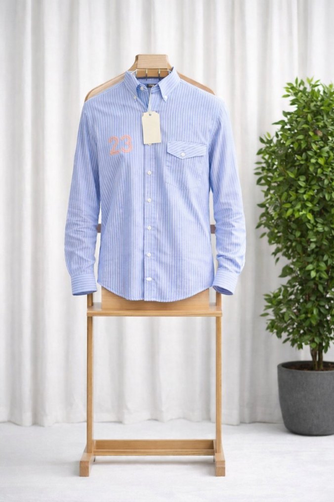 Mavi Çizgili Erkek Uzun Kollu Gömlek s