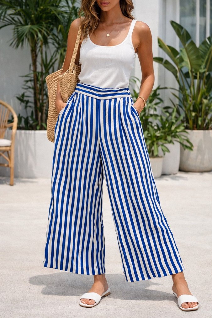İnce kumaşlı, yazlık ve hafif yapıda salaş pantolon. Şalvar–palazzo arası rahat kesimi sayesinde sıcak havalarda konforlu kullanım sağlar. Bel kısmı lastiklidir, esnektir ve bele rahat oturur. Mavi–beyaz çizgili deseniyle ferah ve yazlık kombinlere uygundur. Beden: 38 Boy (belden paçaya): 80 cm Kumaş: İnce, hafif, yazlık Bel: Lastikli ☀️ Günlük kullanım, tatil ve yaz kombinleri için ideal Temiz ve bakımlı durumdadır,