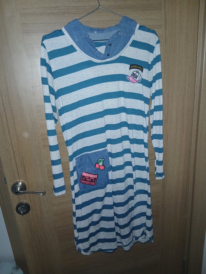 Mavi Çizgili Hamile Elbisesi, Uzun Kollu, Rahat Kesim