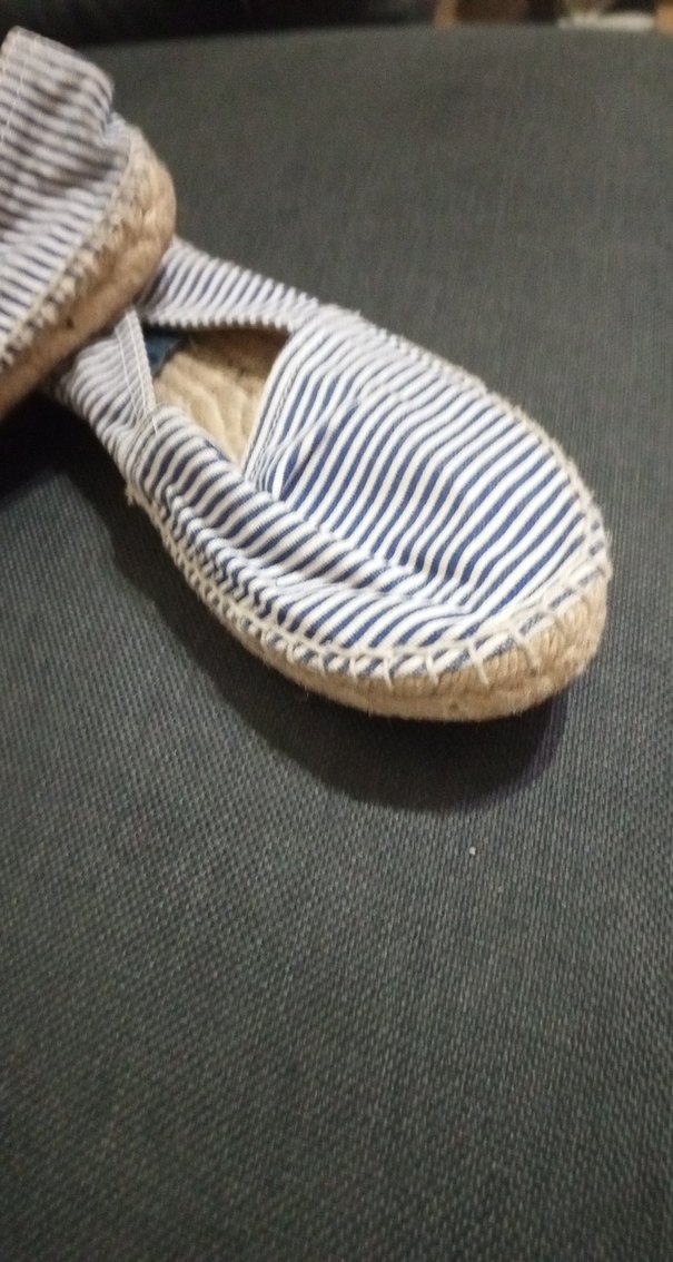 Mavi dolgu topuk, plise detaylı, çizgili zebralı desenli, kauçuk tabanlı günlük kadın espadril.