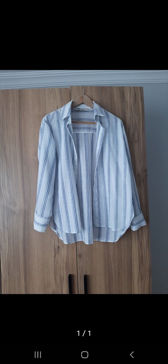 Nefes alabilen keten kumaştan, düğmeli, uzun kollu, yakalı ve bol kesim mavi çizgili kadın gömleği. Trendy ve rahat bir görünüm sağlar.Marka temsili