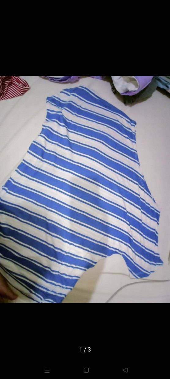 Kayık yaka, kolsuz ve drapeli tasarıma sahip mavi beyaz çizgili bluz. Günlük sokak stiline uygun, midi boy ve vücuda oturan kesim.