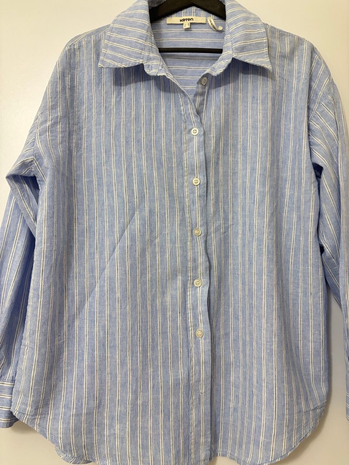 Mavi Çizgili Keten Kadın Gömlek