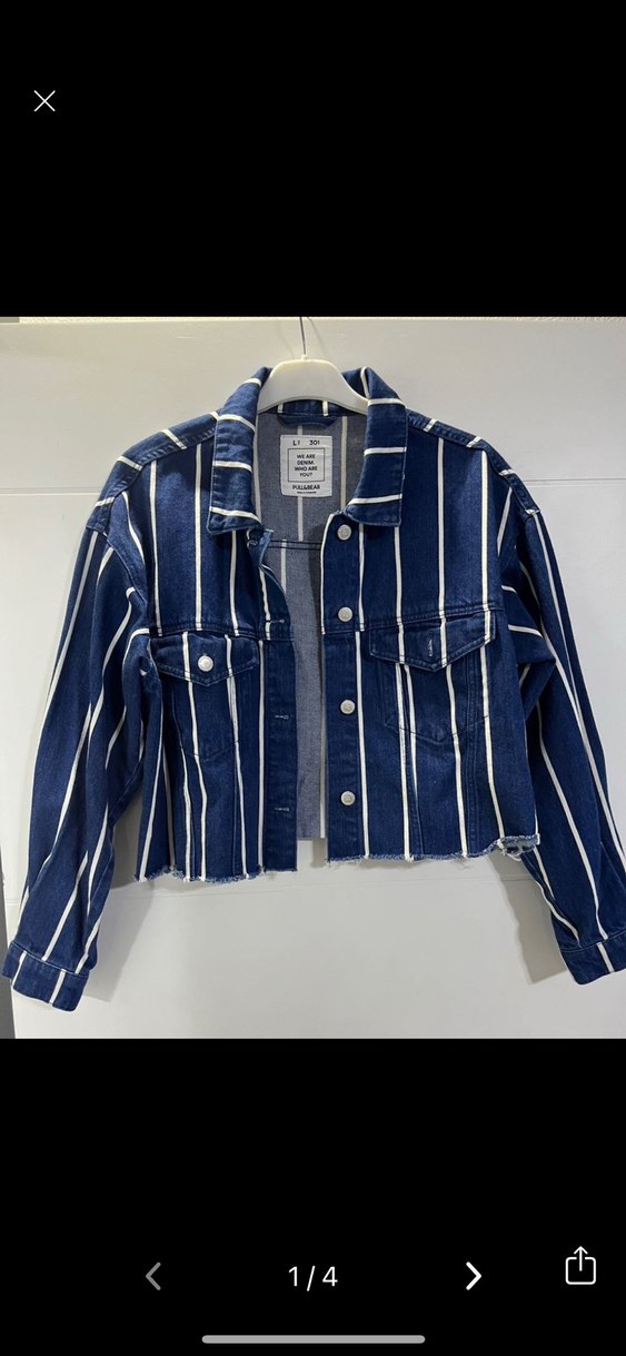 Mavi çizgili denim kumaştan yapılmış, düğmeli kısa ceket. Uzun kollu ve regular fit kesime sahip, günlük kullanıma uygun şık bir parça.