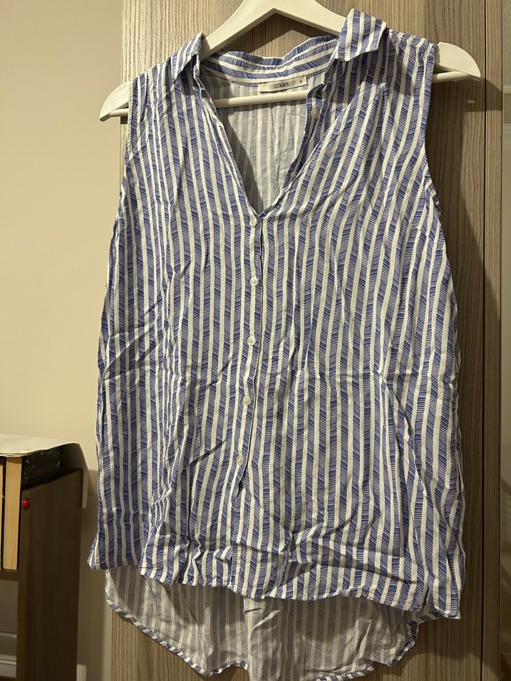 Mavi Çizgili Kolsuz Keten Gömlek