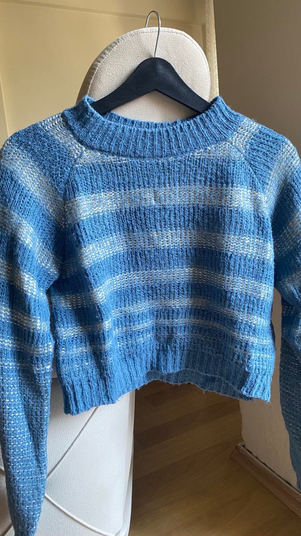 Mavi Çizgili Örgü Kadın Kazak