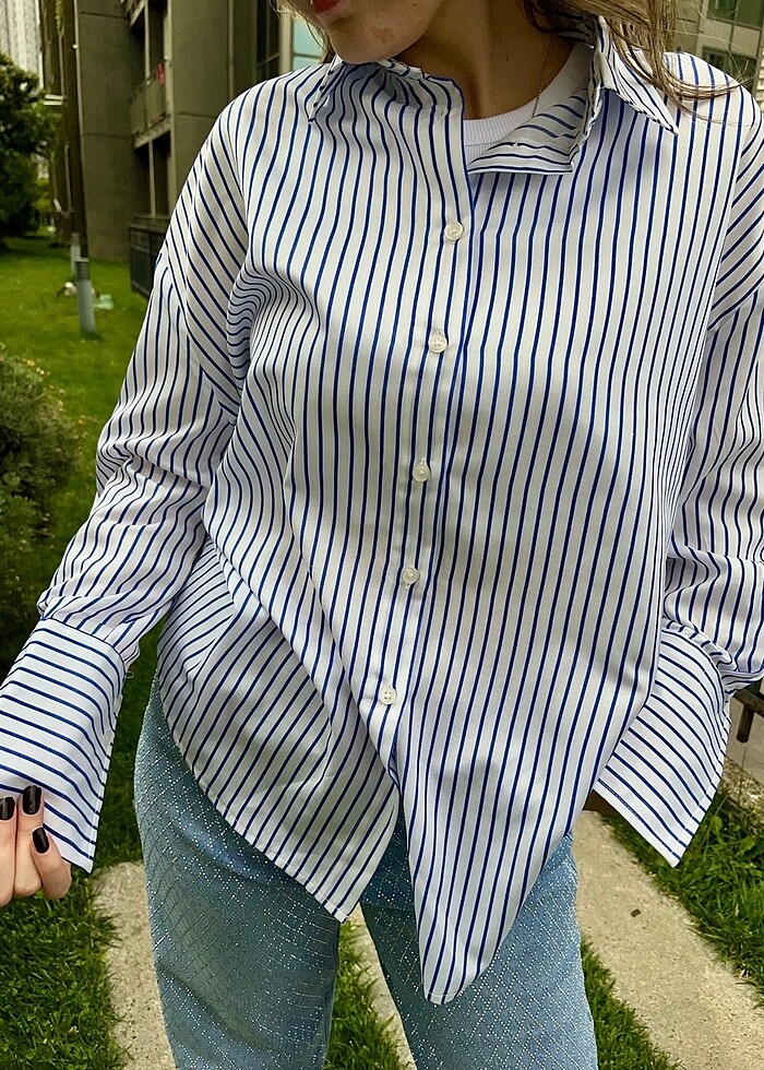 Mavi Çizgili Oversized Gömlek
