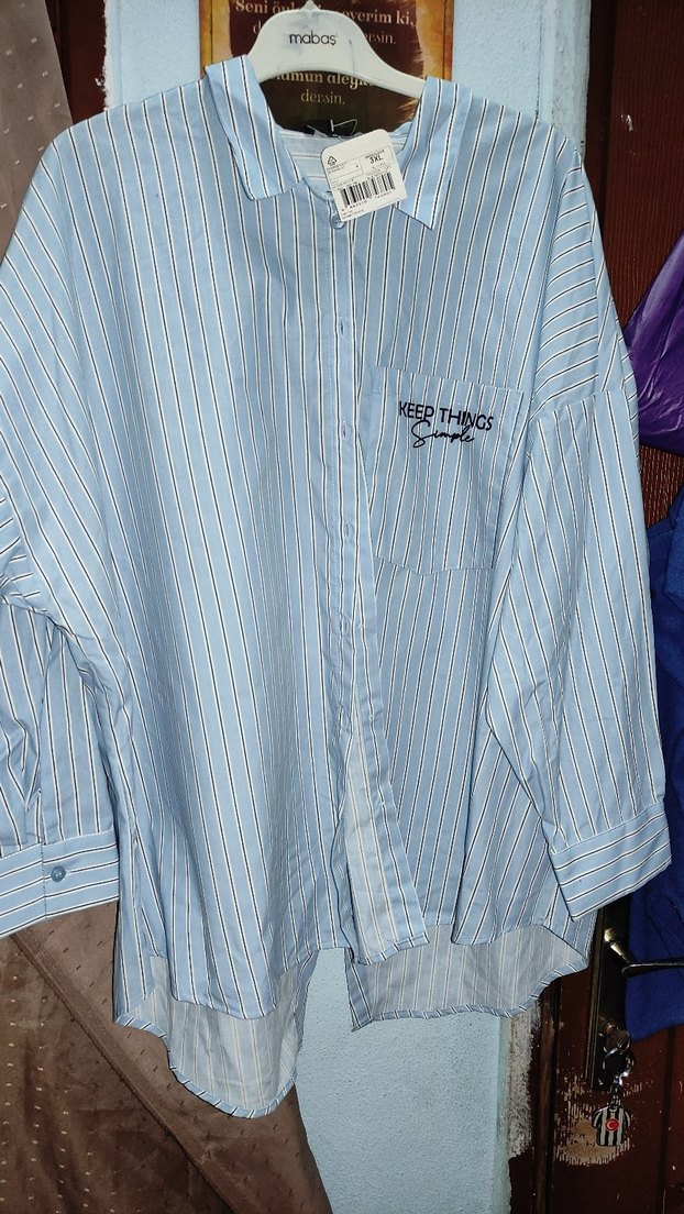 Pamuklu, uzun kollu, mavi çizgili ve düğmeli kadın gömlek. Salaş kesim, yakalı ve göğüs cebinde yazı detaylıdır. Günlük sokak stiline uygundur. Ürünlerde iade kabul edilmeyecektir lütfen detaylı inceleyerek alınız.