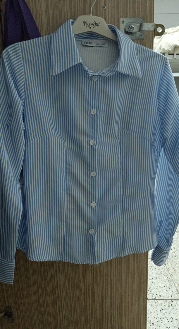 Regular fit ince Mavi çizgili gömlek, uzun kollu, yakalı ve düğmeli detaylara sahiptir. Normal uzunlukta ve vücuda oturan vücudu saran , ofis kullanımına uygundur.