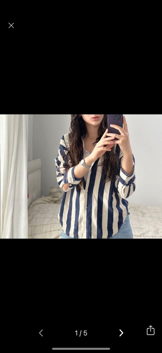 Mavi Çizgili Uzun Kollu Denim Gömlek