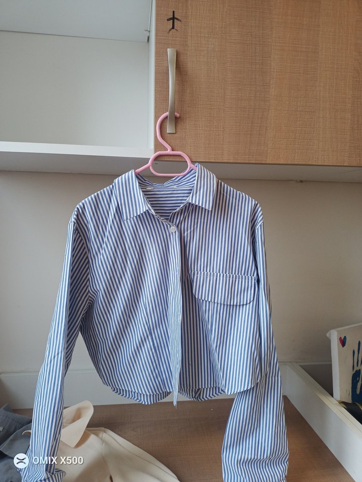 Mavi çizgili uzun kollu kadın gömlek, pamuklu kumaştan üretilmiş ve düğmeli ön yapıya sahiptir. Regular kesim ve yakalı tasarımla günlük sokak stiline uygundur. X501 kodu bulunur.
