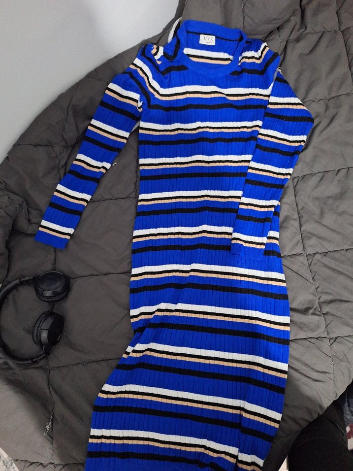 Mavi Çizgili Uzun Kollu Triko Elbise