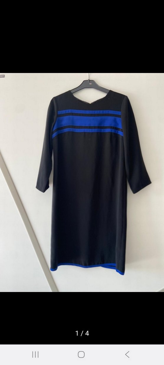 Uzun kollu, kayık yaka mavi çizgilielbıse. Drapeli ve regular fit, midi boyda, ofis ve günlük kullanıma uygun.fıyat dıp kacırmayın