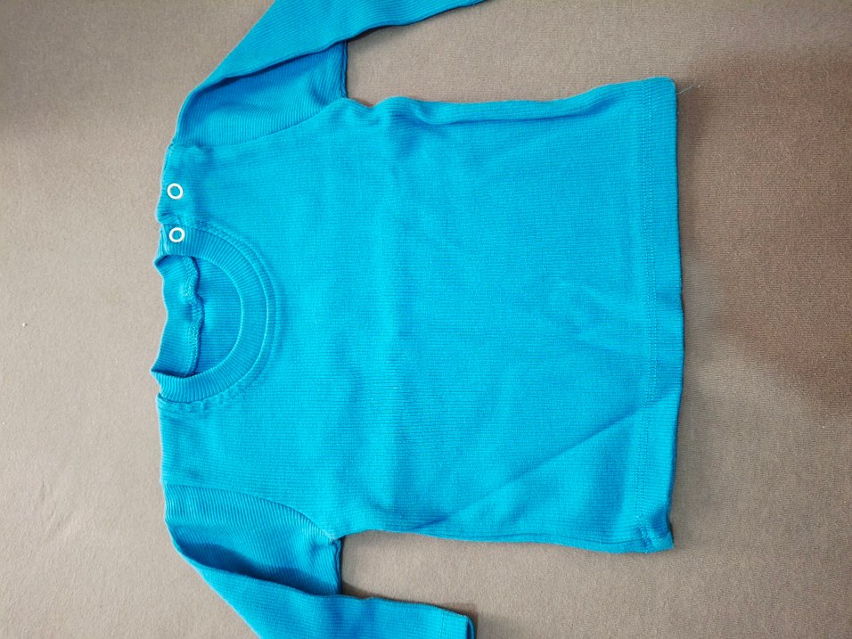 Mavi renkte, uzun kollu ve yumuşak dokulu çocuk içliği, katmanlama için uygundur.