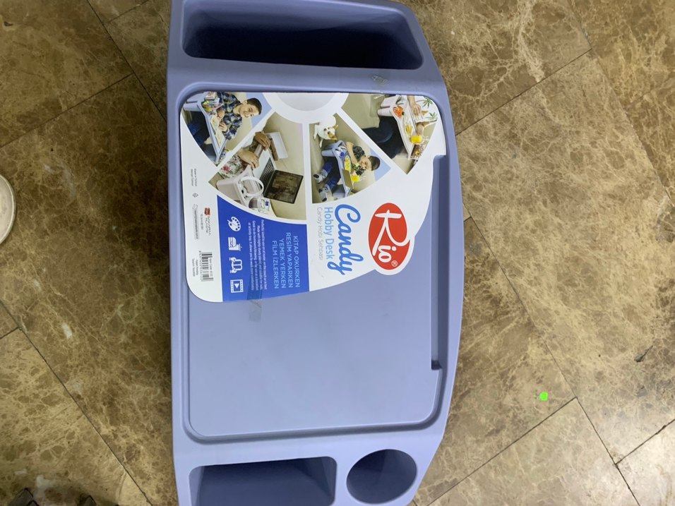 Rio Candy çocuk rafı, mavi renkte ve çoklu bölmelere sahip. Bardak tutucu ve geniş düz yüzey ile oyun veya çalışma için uygundur.